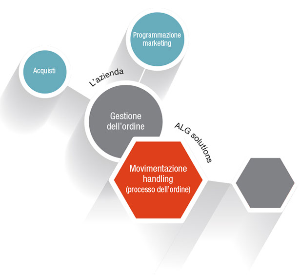 Tutte le fasi di lavorazione vengono completamente coordinate dal Dipartimentale che, tramite interfaccia (collegamento tra Gestionale e Dipartimentale), importa tutte le informazioni necessarie per le lavorazioni handling.